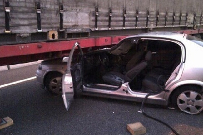 El conductor del pesado reaccionó rápidamente y frenó pronto, arrastrando al Astra bajo las tripas del remolque durante casi 100 metros. Los daños del coche son muy evidentes, con hundimiento de techo inclusive. Parece que sí iba equipado con airbag, pero no se desplegó ni el frontal ni el lateral (observad el asiento).