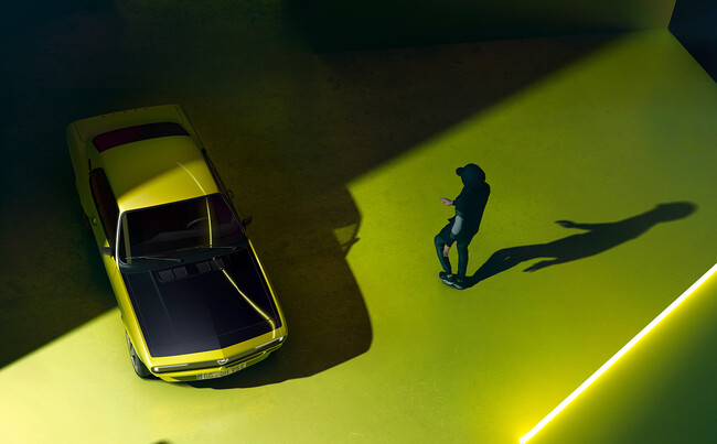 Por lo pronto, Opel se limita a mostrar este Manta GSe ElektroMOD con una fotografía cenital sin detallar sus ingredientes. Lo cierto es que las formas de su llamativa carrocería bitono recuerdan en parte a otro ejercicio retrofuturista del Grupo PSA: el espectacular Peugeot e-Legend, también con estrecha cabina rectangular y un corto voladizo trasero en comparación con el alargado capó.
