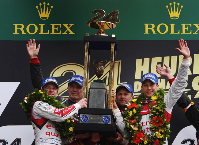 La lluvia se convertía en la aliada de Audi y de sus Audi R18 e-tron quattro y hacía que la segunda unidad, la de Mr Le Mans, Tom Kristensen, se ponía líder, posición que ya no dejaría hasta la bandera a cuadros. Los otros dos Audi sucumbían con problemas antes de llegar la noche. La unidad de Marc Gené sufría un pinchazo mientras que la de los campeones tenía un problema con el alternador que lo sacaba de la lucha.