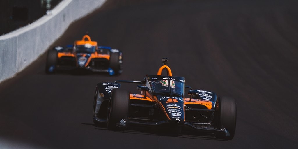 Practice is underway at @IMS.@ArrowGlobal // @McLarenF1 // #Indy500 pic.twitter.com/lH877UNYCP