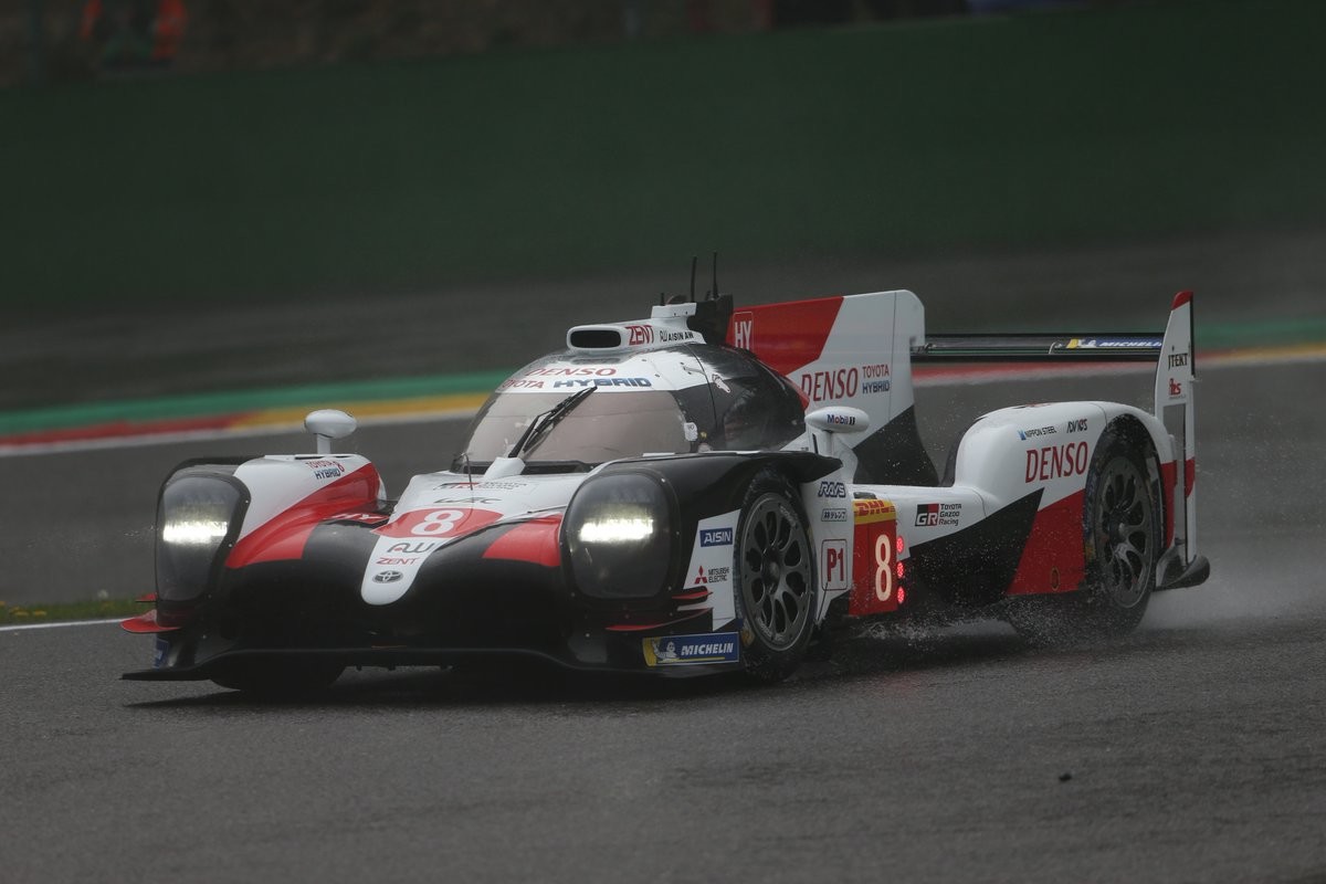 La carrera comenzó apasionante desde el principio. El Toyota #7 mantuvo la primera plaza en la salida, sobre seco, pero ya en la vuelta dos comenzó a diluviar. Los dos coches japoneses se fueron a boxes para montar las ruedas de seco, pero un error en el coche de Alonso le hizo perder más de quince segundos de ventaja sobre sus rivales.