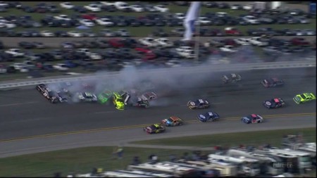 A pesar de la espectacularidad del accidente, no hay que lamentar víctimas. Al final, pasó líder por meta Kenseth con el Toyota Camry perdón, un trasto de carreras con pegatinas que ponen Camry. La realidad NASCAR es mejor que la ficción el Destruction Derby. ¡YEEEEEHAAAAA! 25 coches a hacer puñetas.