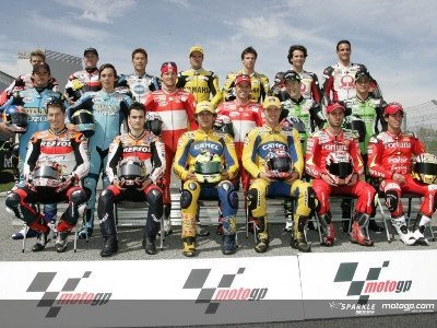 Como cada año, los de la federación nos presentan las fotos de familia de cada categoría, en donde podemos ver por casi única vez en el año (o sin casi), las caras de los pilotos antes de que se suelden el casco al cráneo y salgan a partirse la espina en cada carrera. Fijaros bien en la foto de moto GP, ya que para mí es una foto hecha con mucha intención: en el centro, Valentino Rossi, el campeón y la persona a batir. Luego, a la derecha, Dani Pedrosa… ¿Casualidad? Pues no se, no conozco los motivos de colocar así a la gente, pero justo entre ellos, y detrás, está Sete y la primera fila la componen los equipos teóricamente potentes y los pilotos con más posibilidades. O sea, que Dani, al fin y al cabo, parte en buen lugar mediático, ¿no? Sólo me sabe mal que Checa esté atrás de todo. Esperemos que este año las cosas le salgan bien a este pedazo de currante, que hasta ahora no le han salid las cosas como creo que deberían.