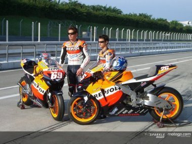 En el primer día de tests en el circuito de Sepang, el equipo Repsol Honda ha presentado la nueva decoración que lucirán Dani Pedrosa y Nicky Hayden en sus monos, y también la decoración de las motos. Como se puede apreciar, dominan los colores de Repsol, como viene siendo habitual, y en general, pocos cambios ha habido con respecto a la temporada pasada. Quizás la mayor novedad es la inclusión del logo de Repsol encima del número del piloto. Debido al logo presente en los hombros del mono de Pedrosa, su nombre ha tenido que ser trasladado un poco hacia abajo, y también parece que cambiará el diseño de su casco para casar mejor con su nueva indumentaria.