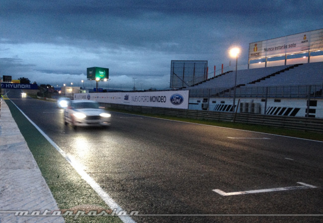 Ya respuestos del susto, y tras el picoteo regado con Fanta de limón y la rueda de prensa previa, la vuelta de reconocimiento al circuito. Allí por fin pude ver con mis ojos lo que llevaba días leyendo, escuchando y viendo en vídeo. Uf... era chiquito pero matón, el jodío. Me refiero al Circuito del Jarama, claro. El bicho para la ocasión, el Ford Mondeo 2.0 TDCI 180, menos chiquito cualquier cosa. El asfalto estaba mojado y el coche se iba con cierta facilidad. Mucho morlaco para aquella plaza. Y el objetivo era consumir poco yendo lo más rápido posible, no acabar la jornada comiendo grava.