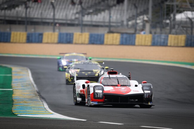 Esto ha dejado al Toyota #7 en el liderato y con una ventaja considerable en muy poco tiempo, ya que en la segunda y tercera posición aguantan los Glickenhaus, pero incapaces de acercarse al coche japonés. De hecho, el Jota de António Félix da Costa, un LMP2, se acercaba peligrosamente a los dos Glickenhaus, que además rodaban con el #708 dañado por delante del #709.
