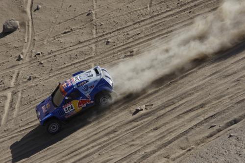Stephane Peterhansel ha sido el único que ha podido seguir el ritmo del piloto de Volkswagen, pero pronto ha tenido que renunciar al quedarse clavado en unas dunas. Carlos Sainz ha llegado a meta en segunda posición. Los 6 minutos perdidos en la jornada de ayer hacen que la clasificación general se comprima, y la distancia entre Sainz y Al-Attiyah haya descendido de la barrera de los nueve minutos.