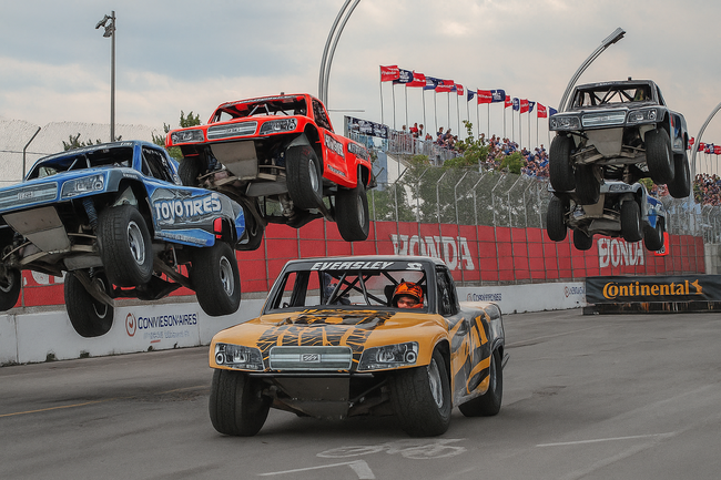 Aunque nacieron para correr sobre tierra en estadios, las Stadium Super Trucks no tardaron en conquistar los circuitos urbanos de medio mundo. Allí, sus rampas metálicas de más de cinco metros de largo y casi un metro de alto se convierten en el alma del espectáculo: las camionetas despegan a más de 100 km/h, alcanzan hasta seis metros de altura y vuelan distancias de hasta 50 metros antes de volver a tocar el suelo y seguir compitiendo como si nada.