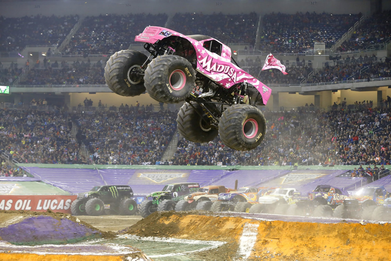 Más de una decena de monster trucks se verán las caras sobre la arena demostrando sus habilidades ante los diferentes saltos y obstáculos que se prepararán en el circuito donde la velocidad también es una característica principal. Estos impresionantes vehículos son capaces de realizar grandes saltos a pesar de sus enormes dimensiones, pero es que sus cifras son para leerlas dos veces.