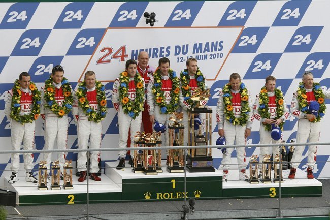Del triplete Peugeot, al doblete de Audi. El Audi R15+ #9 con Bernhard-Dumas-Rockenfeller era un sólido líder, respaldado por el segundo Audi, el #8. Por detrás, el Peugeot de Gené comenzaba la caza de la segunda posición. Caza que se vería interrumpida por, de nuevo, un motor roto. De intimidar a Audi a dejarles un triplete en bandeja.