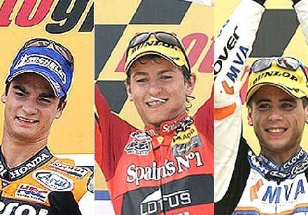 De hecho, por qué no, en las tres categorías se puede pensar en el título mundial, algo que sería, de nuevo, histórico para nuestro deporte y confirmaría que el mundial de motociclismo es por tradición, cosa de italianos y españoles. Dani Pedrosa es el piloto que, a priori, no tiene por qué ganar el mundial, ya que es un novato en la categoría. También lo fue en su día en 250cc y dejó a todo el mundo pasmado al embolsarse el mundial en el año del debut.