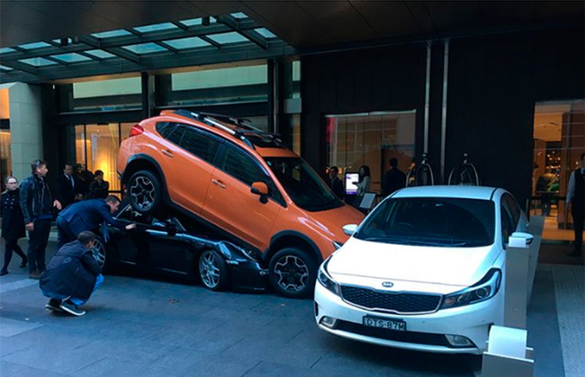Insólito es este caso que nos ocupa. Lo que ves en la foto es obra de un aparcacoches de un hotel en Sídney: un Porsche 911 Carrera Cabriolet estacionado, literalmente, bajo un Subaru XV. El picassiano conjunto fue producto de los torpes intentos del mencionado trabajador del hotel por aparcar el descapotable frente a la puerta del mismo. El dueño del modelo de Stuttgart tiene que estar contento...