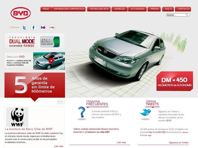 Dicen que es mejor tarde que nunca. La marca BYD es poco conocida en España, y es difícilmente conocerla si no tiene página Web en castellano, pero por fin le han puesto remedio. La han estrenado con integración en redes sociales, una tendencia al alza en el sector para conectar mejor con su público.