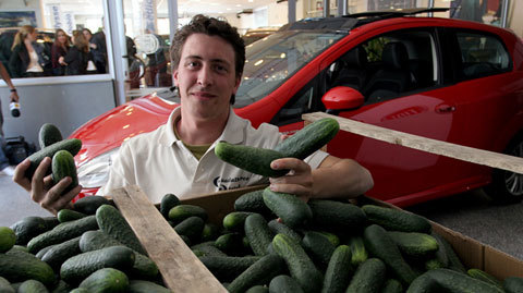 Fiat publica una promoción en su web ofertando un Fiat Grande Punto por 50 pepinos al mes. Alberto Villalobos la ve, se dirige a El Ejido Egido en Almería y se trae, en menos de 24 horas (y sin estar en temporada), los 13.000 pepinos necesarios para comprar el coche, por un valor de 1.800 euros. ¿Resultado? Un ahorro de 11.100 euros y demasiados pepinos como para hacer una ensalada.