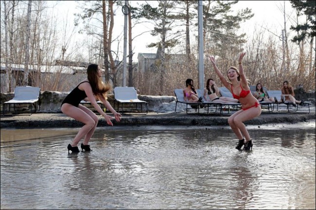 Esto ha sucedido en Novosibirsk, en la fría Siberia y en pleno mes de abril, aunque con una temperatura menos extrema de lo que cabría pensar, concretamente nueve grados centígrados. La protesta es debida a que el alcalde de la zona hace caso omiso del lamentable estado de las calles, que tienen socavones y charcos como piscinas que generan suciedad y dificultan el tráfico.
