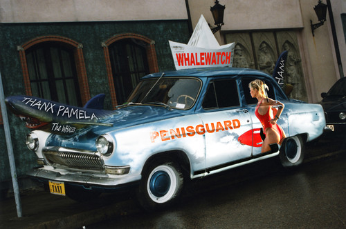 Así que han cogido un clásico Volga y lo han "tuneado" como el icono de la salvación de las ballenas, ya que no se las matará y podrán estar tranquilas por sus penes. "Whalewatch" significa "Vigilantes de las ballenas" y "Penisguard" que salvan eso... ya sabéis... y tal.