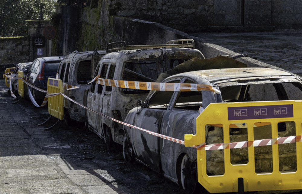 Con nocturnidad y alevosía: un total de 21 coches fueron devorados por las llamas en la madrugada de ayer lunes 20 de marzo en el centro de Tui (Pontevedra). Estos automóviles fueron víctimas de 12 incendios provocados, todos a coches ubicados en el caso viejo de esta localidad.
