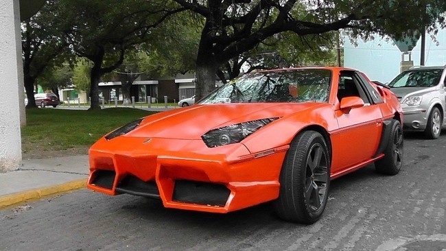 Un aborto automovilístico anda suelto en Monterrey. Salió de fábrica en 1986 como un Pontiac Fiero, y en la actualidad, aunque quiso parecerse a un Lamborghini, su dueño reniega de él. Dice tener solo 280 kilómetros, y lo entiendo, me daría vergüenza conducir algo así y que la gente me viese.