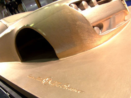 Cuando he visto esta primera imagen, lo primero que me ha venido a la cabeza ha sido ver algo parecido a Han Solo preso en el bloque de carbonita del Episodio VI, pero esto ni es carbonita, ni el Alfa Brera está preso, es simplemente una escultura a escala 1:2 realizada en bronce por el Centro Stile Alfa Romeo y expuesta en la muestra Boccioni, pittore, scultore, futurista.