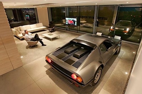 De acuerdo, sólo cabe un coche. Pero es posible que sea el mejor lugar del mundo para dejar nuestro coche, especialmente si es un Maserati GranTurismo o un Ferrari 512 BBi. Es la creación de Holger Schubert, un arquitecto que se atrevió a construir una vitrina de lujo para sus dos joyas integrada en el salón de su casa.