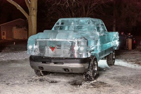 ¿Qué sentido tiene hacer un _pick-up_ con carrocería de hielo? La verdad, no mucho, porque la densidad del material (y la cantidad empleada) es muy elevada y es demasiado sensible a la temperatura exterior. En Canadá, donde hace un frío que pela según donde, eso deja de ser un problema.