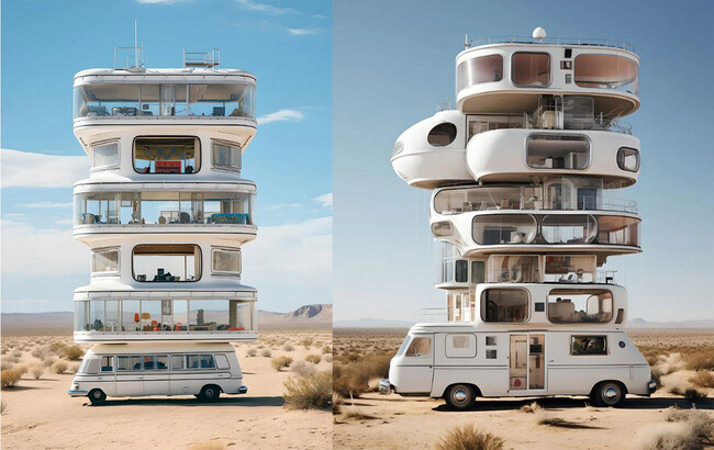 El estudio de diseño y arquitectura Ulises Design Studio (Berlín, Alemania) lo ha vuelto a hacer: sirviéndose del programa de Inteligencia Artificial Midjourney ha reventado las redes sociales con su último trabajo: una peculiar serie de diseños de autocaravanas disruptivas y surrealistas que ha bautizado como “Kinetic Kingdoms”.