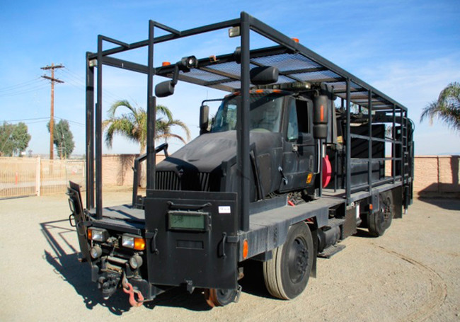 Esta bestia concebida para el transporte de unidades terrestres, pudiendo hacer uso de la red ferroviaria, está concebida sobre un camión de transporte International 4400 de 2006 y lo pone a la venta Western Construction Auctions a través del mencionado portal.