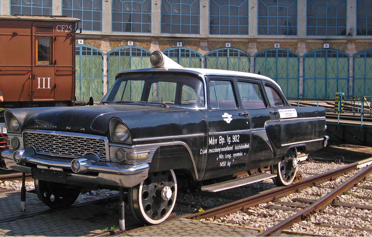 Este extraño one-off derivado del lujoso GAZ-13 Chaika o ‘gaviota’, de más de 5,5 m de longitud, sin volante y apto para circular por las vías del tren, se fabricó en la década de 1960 y hoy en día se conserva en el Parque Histórico Ferroviario de Budapest junto a más de un centenar de vehículos ferroviarios históricos.