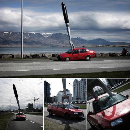 Se ve que estuvieron presentes en el Reykjavík Arts Festival y que su niña gigante se les fue de las manos y cometió un cochecidio con su tenedor de trinchar. Original, aunque estoy de acuerdo con que las nubes de la foto son casi lo que más me atrae.