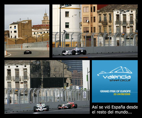 La celebración del Gran Premio de Europa tuvo movimiento de información en lo deportivo y lo extradeportivo, pues no ha estado exento de polémica. He hecho un breve repaso a recortes de prensa, pasada la borrachera del fin de semana pasado. Al final, la Generalitat se puede dar con un canto en los dientes, por que a pesar de lo que se fue de presupuesto el Circuito Urbano, han ingresado 5 millones de euros como beneficio.