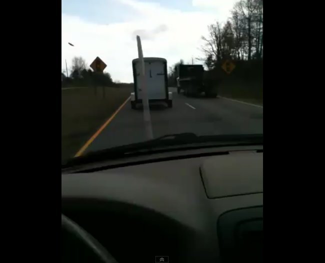 El vídeo de este post en un claro ejemplo de esto. Wendy conducía su coche al mismo tiempo que grababa a dos vehículos que circulaban delante de ella, cuando el remolque del coche que tiene delante pisa un listón de madera lanzándolo contra el parabrisas de su coche.
