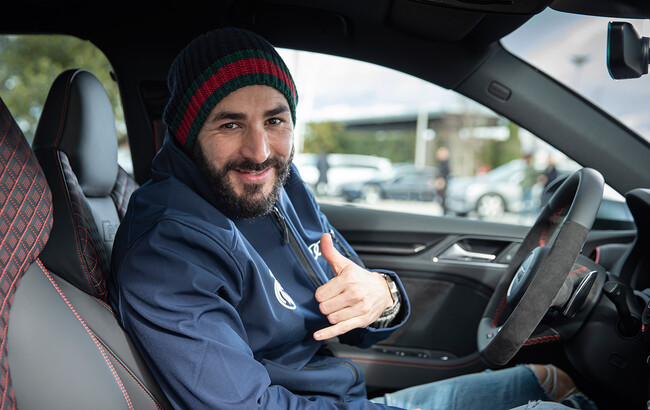 La foto que ilustra este artículo corresponde la entrega de coches de Audi para el Real Madrid de 2019, con Karim Benzema posando en su Audi RS4.