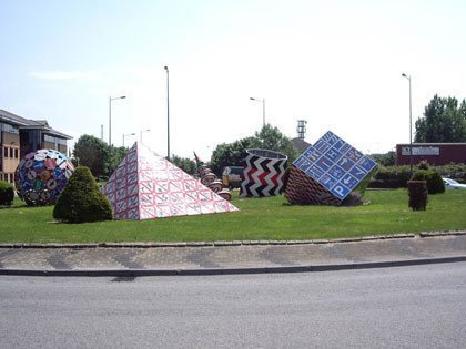 No creo que se llame así, pero el nombre no le vendría mal y más si tuviese una autoescuela cerca. Esta situada en Cardiff y como podéis ver, están casi todas las señales (de allí) presentes y agrupadas por formas geométricas, las cuadradas en un cubo, las triangulares en una pirámide y las circulares forman una esfera. Había visto decoraciones raras en rotondas, pero nunca una como esta…