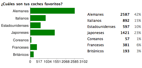 Además de preguntaros si os sentíais identificados también os pedíamos que nos confesáseis vuestros gustos sobre vuestras marcas favoritas. Como era de esperar, han ganado los alemanes, la larga tradición de marcas premium como Mercedes, BMW, Porsche o Audi posiblemente ha pesado bastante más que otras marcas generalistas.