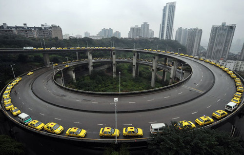 Esta imagen ha dado la vuelta al Mundo. Se ha tomado en Chongqing (China) y es una cola de taxistas esperando para repostar gas natural comprimido (GNC). En dicha ciudad pueden usar gasolina o GNC, pero obviamente prefieren lo segundo debido a su rentabilidad. Las colas son kilómetricas (literalmente).