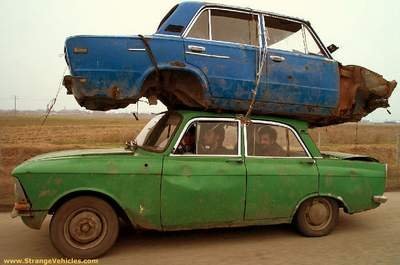 Vía Autoblog, me entero de la existencia de Strangevehicles, una web en la que coleccionan las fotos más curiosas tomadas a todo tipo de vehículos. Están los coches más feos, los más grandes, los peor decorados y los que tienen un dueño más frikie; todo lo que te puedas imaginar, y más. Otras imágenes, como la que os traigo, tienen más que ver con los usos más peculiares que se pueden dar a un vehículo.
