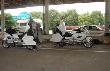Vemos que en China las utilizan, no es de extrañar viendo lo bien que se mueven las Honda Goldwing a pesar de tener que cargar con todo un coche. Sin embargo no cualquier moto puede realizar esta tarea: las Goldwing de la policía china han sido potenciadas, aunque ya de serie traen un importante motor 1.8 de 6 cilindros y 118 caballos.