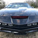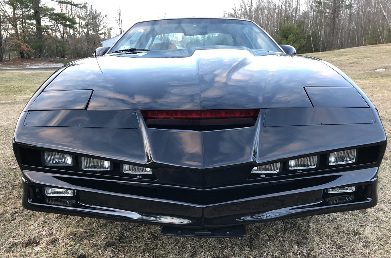 Según podemos ver en esta foto, que retrata frontalmente al emblemático automóvil, se trata de una réplica bastante conseguida del Pontiac Firebird Trans Am de 1982 utilizado en la mítica serie de 'El coche fantástico'. Así, luce por ejemplo la característica óptica en color rojo flanqueada entre los faros retráctiles.