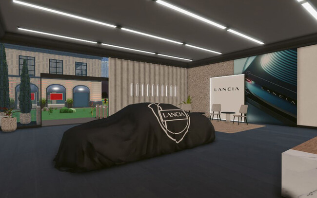 Llama la atención el cuidado diseño de la sala virtual, que hace un guiño al futuro de la legendaria marca, pues está claramente inspirado en el centro de exposiciones que Lancia posee en la Via Gattamelata de Milán, donde se reveló por primera vez su nueva identidad corporativa.