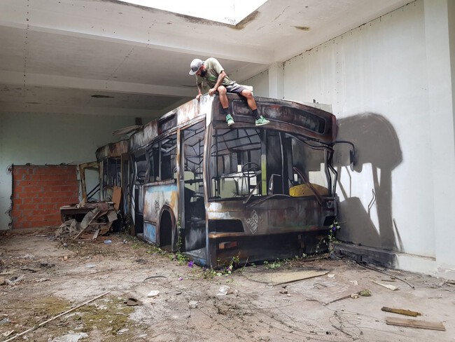 Si no fuera por el vídeo del proceso creativo de una de las obras que más notoriedad le han dado a ‘Odeith’ en todo el mundo (y no es de extrañar), viendo solo el resultado final podríamos pensar que se trata de un verdadero autobús escolar con mucha historia que contar.