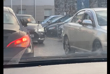 Esta usuaria estaba, como varios coches, buscando un sitio para estacionar en un parking de superficie, cuando vio a otros dos conductores disputarse el aparcamiento de tan singular manera. Lo que graba parada desde su coche y entre risas: "Esto es genial", comenta.