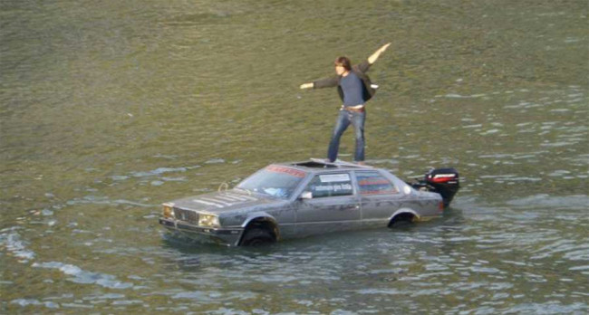 Se trata de un Maserati anfibio de fabricación casera, para el que tomó como base un Maserati Biturbo. Lo más curioso de todo es que el motor biturbo ha dejado paso a un fueraborda situado sobre la tapa del maletero como si se tratase de una zodiac.