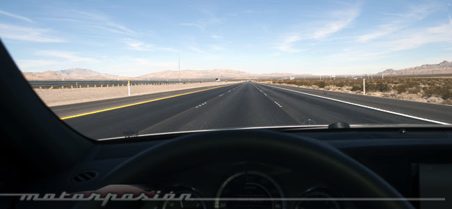 A las cinco de la madrugada del día siguiente, con un buen catarro como recuerdo de mi tierra, comienza la odisea al otro lado del charco. Para el primer tramo de la ruta, con destino Flagstaff, Arizona, vía Las Vegas, nos toca ponernos al volante de un E 350 berlina con motor 3.5 V6 de 306 CV. Cargados hasta la bandera, nos ponemos en marcha hacia la ciudad de los casinos.
