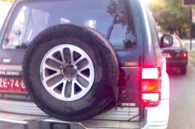 Felipe me envía desde Chile esta imagen de un Mitsubishi Pajero tomada en pleno atasco. El coche no tiene nada de especial, pero fijaros en la rueda de repuesto. Sin duda el tipo sabe cómo mantener su coche y equipos en perfectas condiciones de uso.