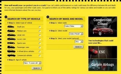 Para muchos, saber cuántas estrellas de la NCAP tiene el coche que conduce es algo que, o bien no le interesa, o bien no sabe donde buscar. Una curiosa página australiana ofrece un formulario donde puedes especificar tu coche según el tipo (coches pequeños, medianos y grandes, de lujo, deportivos, SUV, comerciales…) y la antigüedad, o bien según la marca, el modelo y el año (opcionalmente) de fabricación.