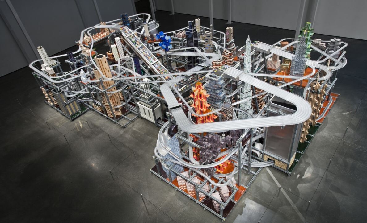 La espectacular “Metropolis II”, del artista Chris Burden, llegó al Museo de Arte de los Ángeles (LACMA) hace una década y sigue siendo una de las estrellas de la muestra. Se trata de una compleja escultura cinética de seis metros de ancho y más de nueve de largo que, a modo de “Scalextric gigante”, representa una ciudad moderna y frenética que no duerme.