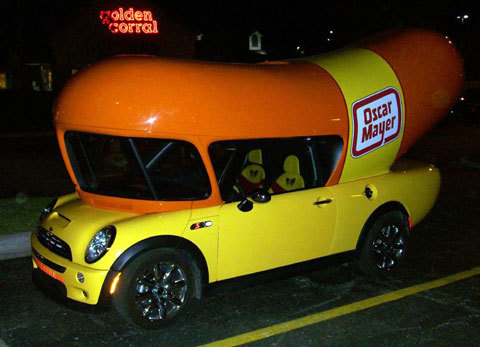 Diría que es la primera vez que usan un coche no americano para promocionarse. En este caso, un Mini Cooper al que le han colocado una enorme salchicha a modo de cabina para el conductor. Según cometan nuestros compañeros de Carscoop, el motivo del cambio podría ser la economía, ya que por ejemplo, el último Wienermobile llevaba un motor Vortec V8 5.7 y eso, para pasearse de estado a estado no es sinónimo de ahorro.