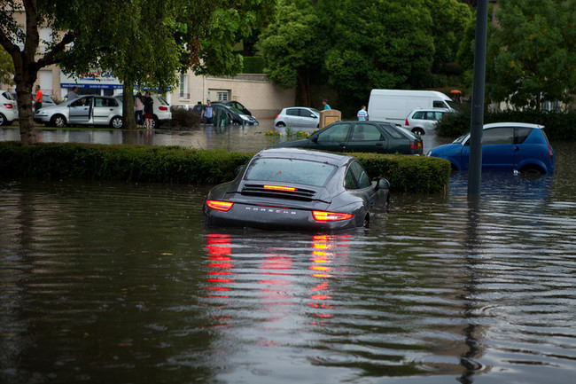 De entre los muchísimos coches que se convirtieron en improvisadas embarcaciones, no podemos evitar sentir verdadero Dolorpasión™ por este pobre Porsche 911. Hay que decir que su conductor luchó por sacarlo del agua contra viento y marea, no se resignó a abandonarlo a su suerte.