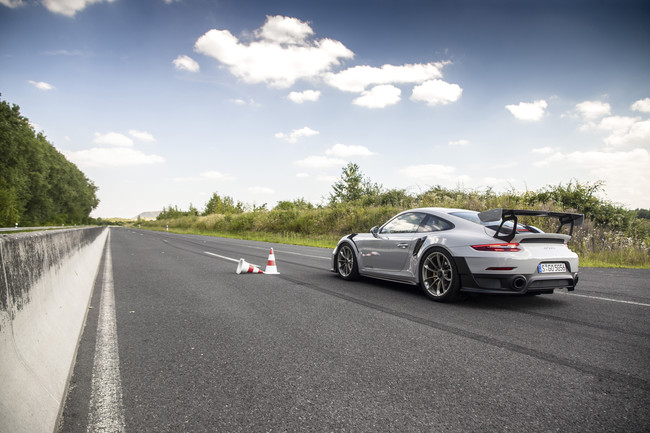 Seguimos acelerando a fondo hasta llegar al mismo punto donde había comenzado esta aventura, pero circulando por el carril contrario. Pasamos por allí a 278 km/h con el GT2 RS demostrando que no tiene fin. Puede acelerar hasta que se acabe la pista. Casi cualquier pista. Es más, apenas hay pistas donde poder ponerlo al máximo de velocidad que alcanza: 340 km/h.
