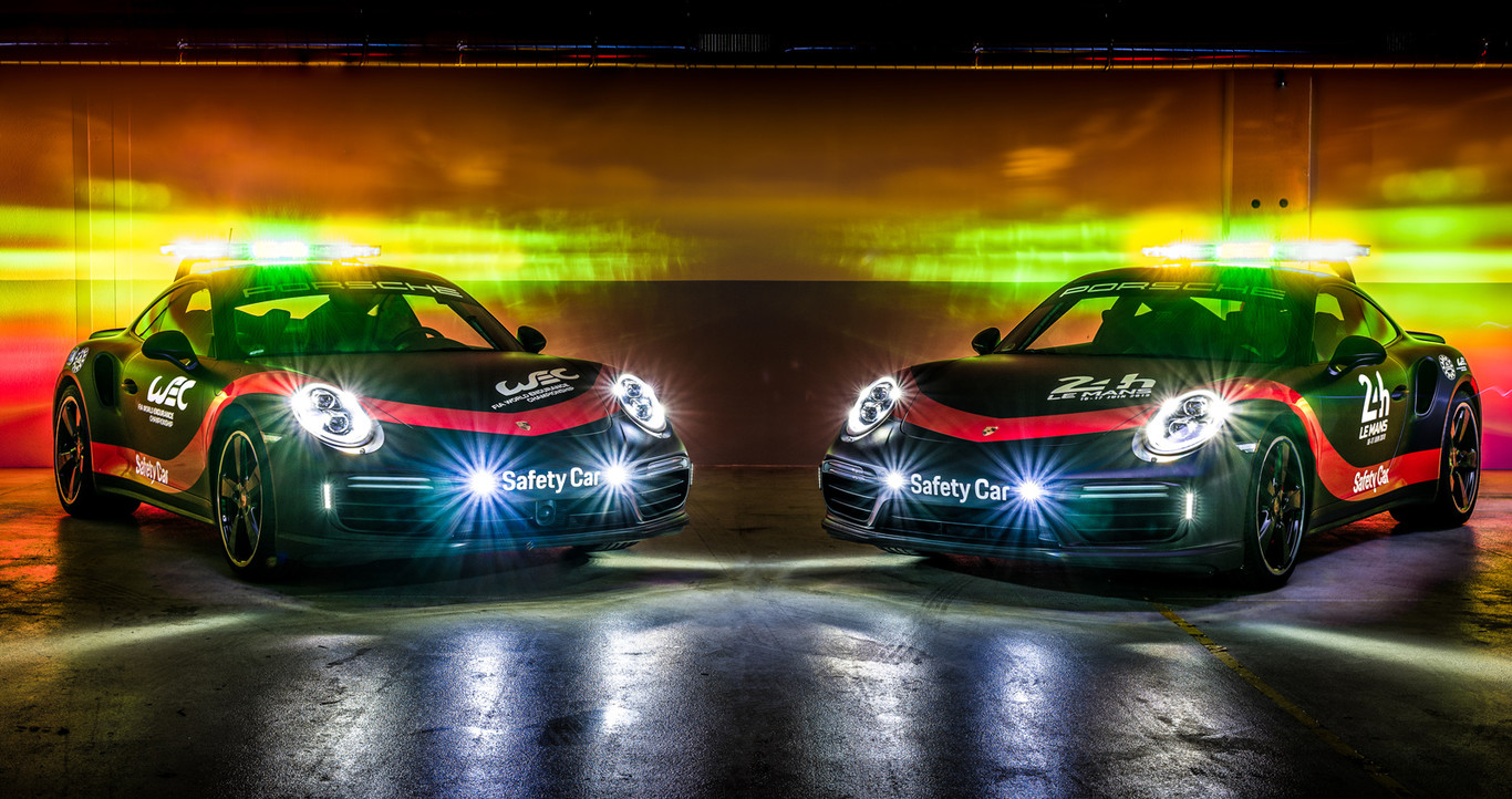 El fabricante de Stuttgart acaba de mostrar el que será el coche de seguridad oficial para el Campeonato Mundial de Resistencia (WEC) de aquí a 2020: un llamativo Porsche 911 Turbo de tracción total y motor 3.8 litros bóxer biturbo de 540 CV de potencia, capaz de acelerar de 0 a 100 km/h en 3 segundos y alcanzar una velocida máxima de 320 km/h.